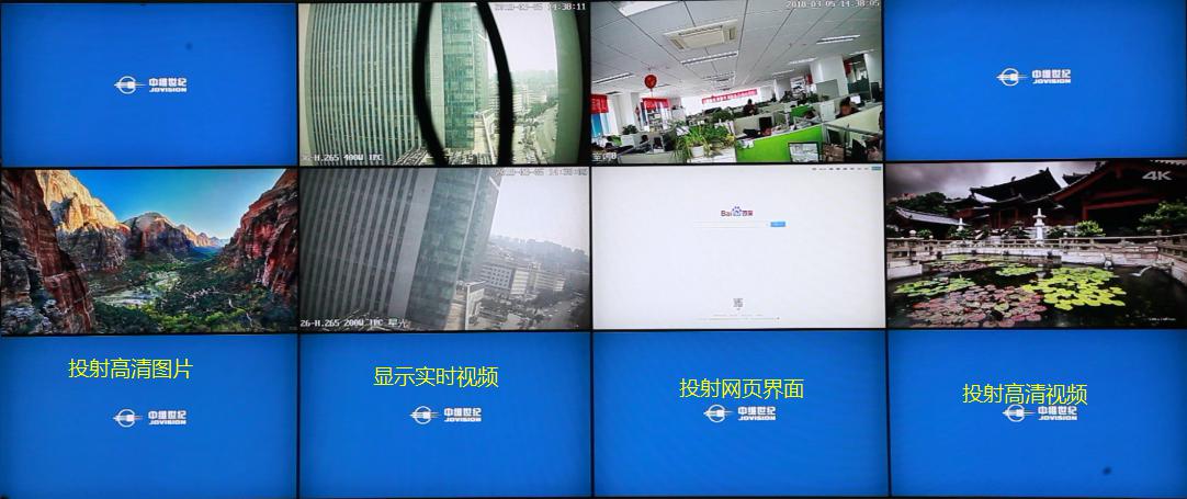 可以将高清图片、WEB网页、高清视频文件通过解码器投射到大屏上进行展示。该功能可在预览视频源的同时,在大屏上投射相关的图片、网页咨询以及配合相关视频文件,达到综合分析的目的。