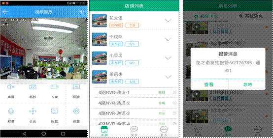 3、通过手机APP访问操作功能:通过APP实现移动终端远程观看掌握动态,主要实现视频远程预览与回放、手动布放撤防、视频监听、报警管理等基础功能