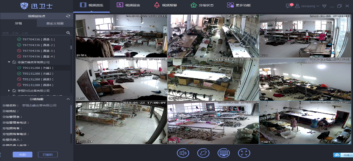灵活配置产生报警后联动的视频,例如商店任何一个设备报警弹出窗口显示商店所有视频;